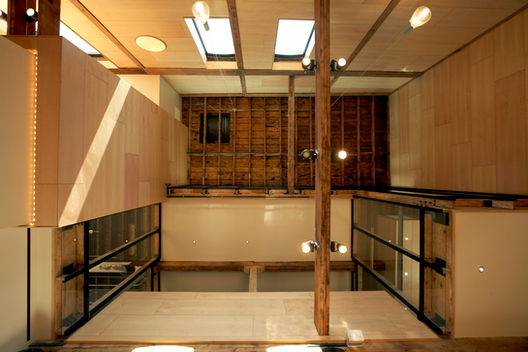 Existing old growth wood members have been blasted with corn husks and planed down for reuse in plain view throughout the building. The century-old drafty masonry shell of the original building has been completely sealed with inert recycled insulating materials and the original window openings, previously filled in with cinderblocks, have been restored with low-e insulated glass. Exterior louvers are used on the south side to prevent heat build-up from sunlight and renewable energy sources from photovoltaics and geothermal heating and cooling help increase the overall energy efficiency of the building. No chlorofluorocarbon-based refrigerants are used in the air conditioning and no halon gases in the fire suppression system; control systems meter HVAC systems, water usage and energy performance of the building.